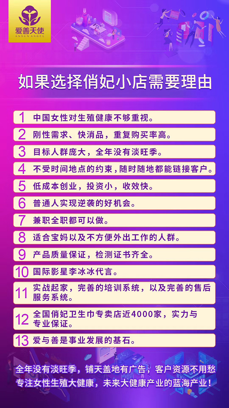 12、全国俏妃卫生巾专卖店近4000家,实力与专业保证。